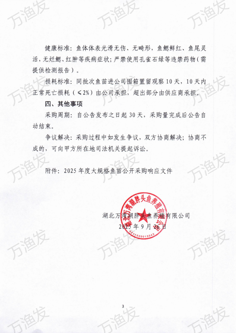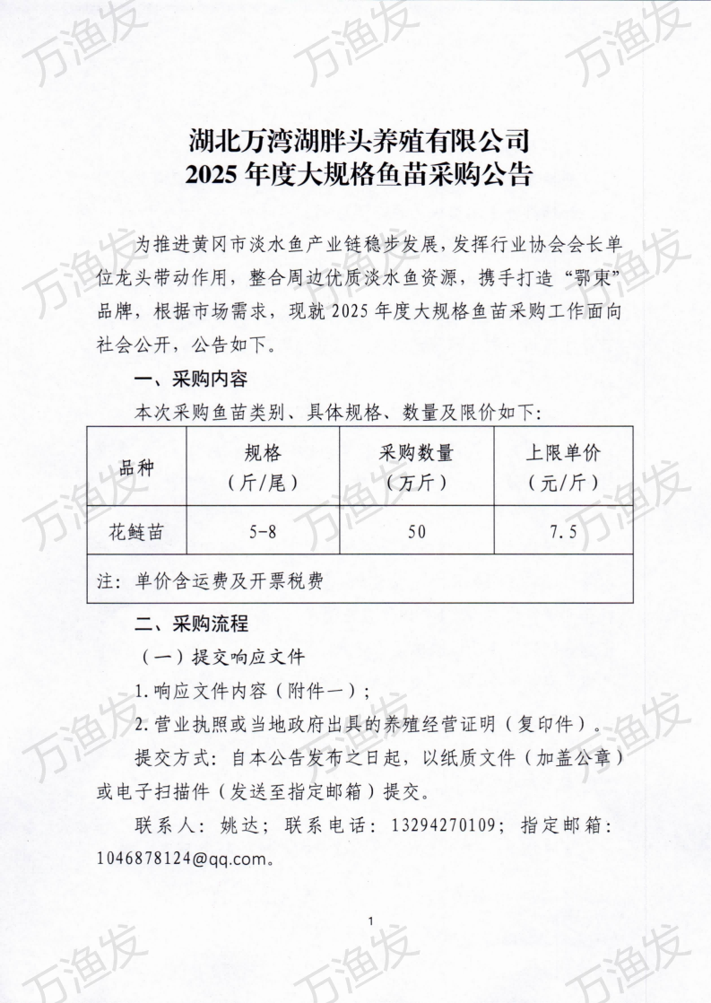 湖北万湾湖胖头鱼养殖公司2025年度大规格鱼苗公开采购响应文件.docx